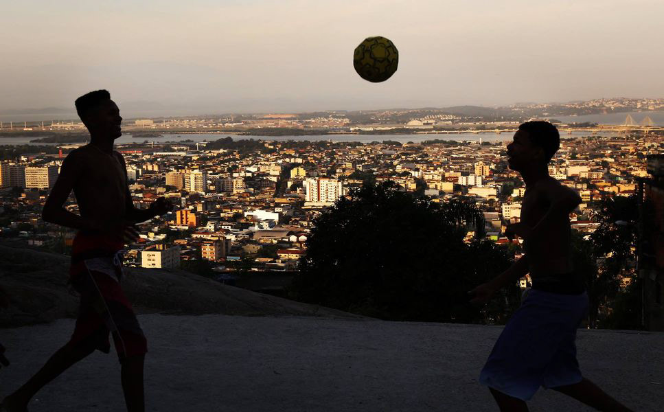 In the fading light of the favela, barefoot players practice the beautiful game that will carry Brazil forward--2015,Rio de Janeiro