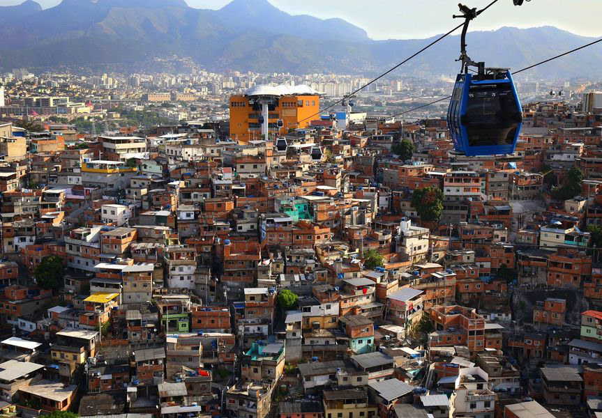 A favela on Rio’s steep slopes — once more accessible before the 2016 Olympics, now facing increased security concerns,2015